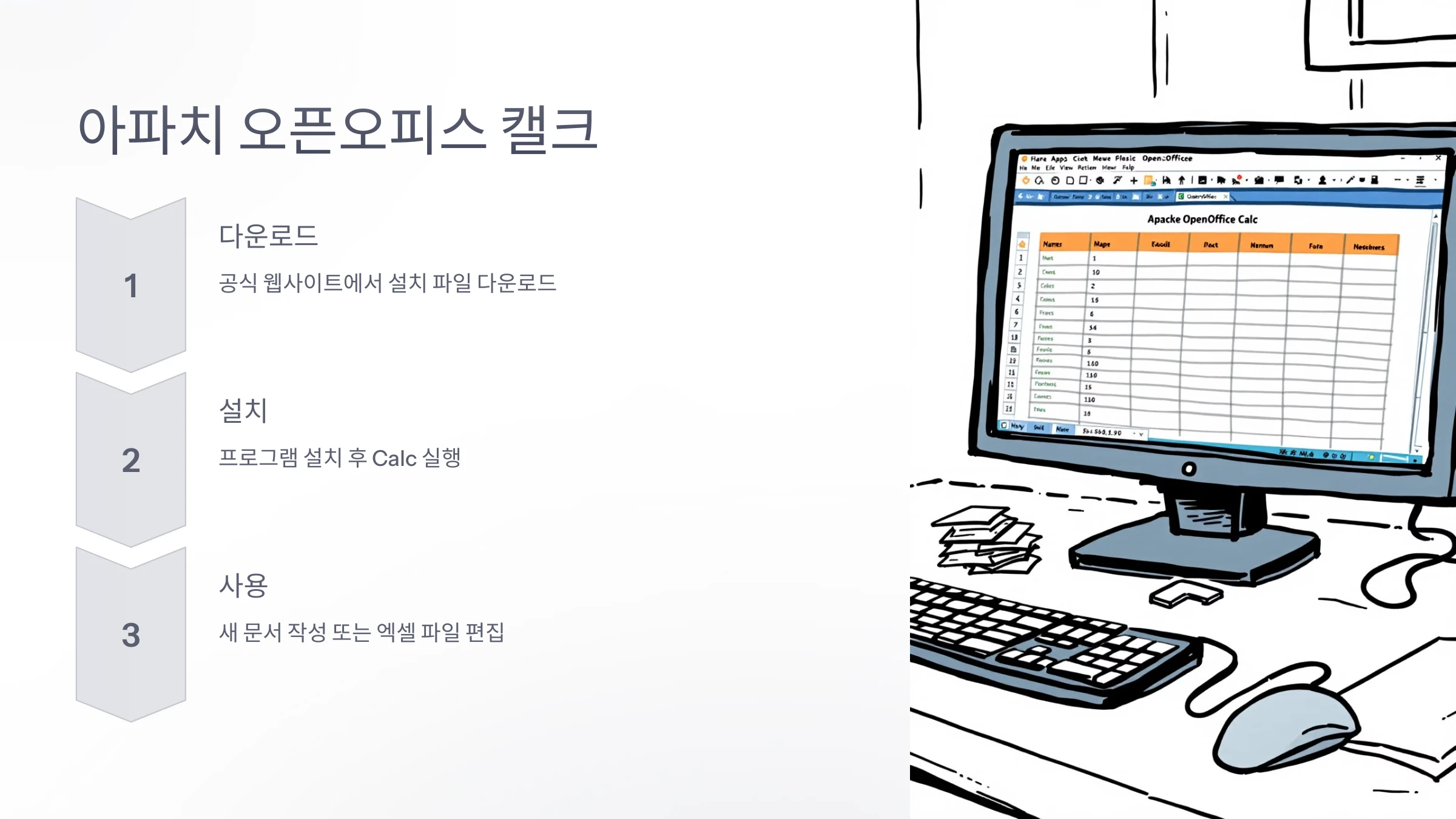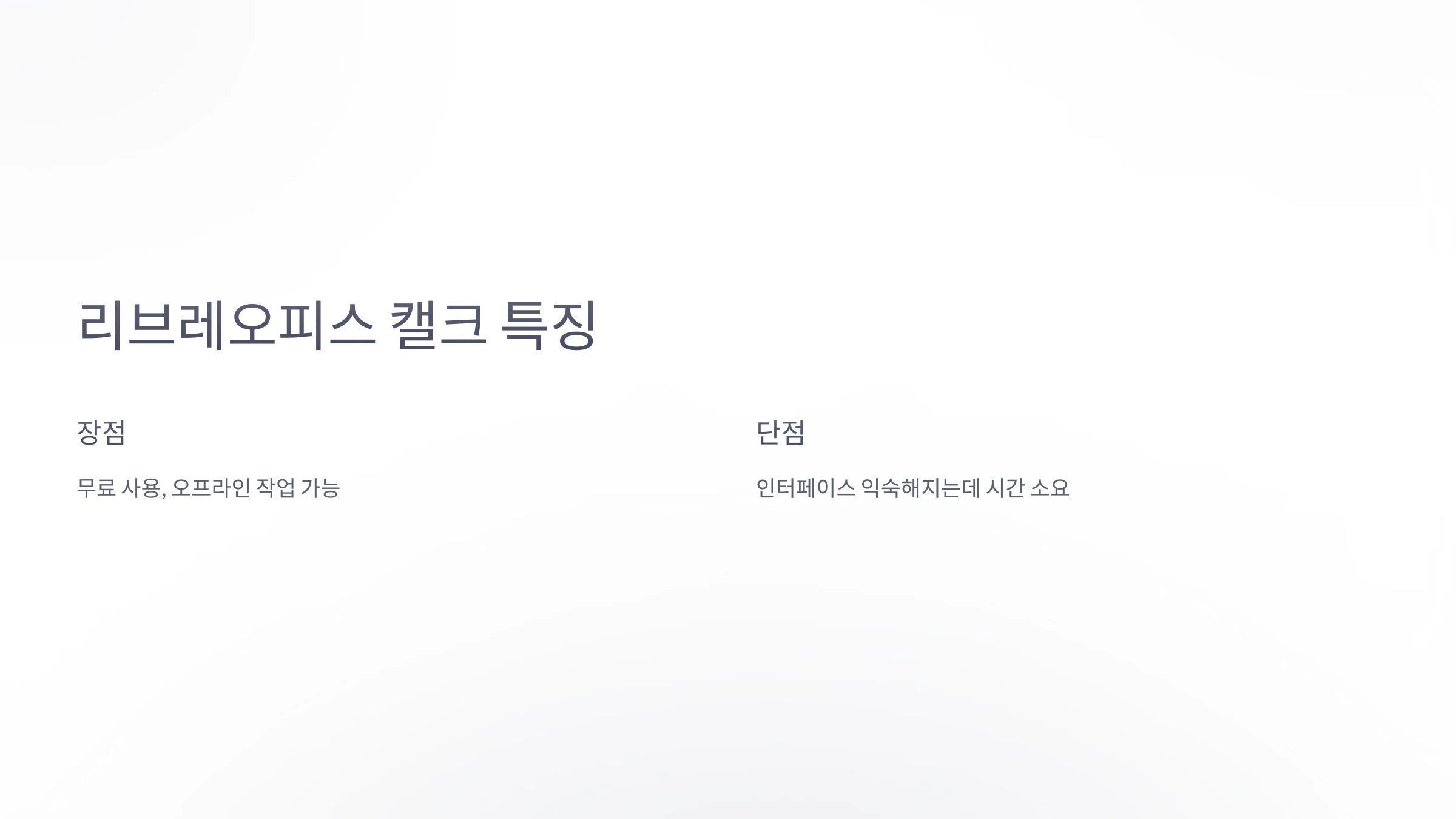 리브레오피스는 오픈소스 기반의 완전 무료 오피스 제품군이며, 그중 Calc는 엑셀과 유사한 인터페이스와 기능을 제공합니다. 오프라인에서 작업해야 하거나 로컬 환경에서 자유롭게 사용하고자 할 때 유용합니다.