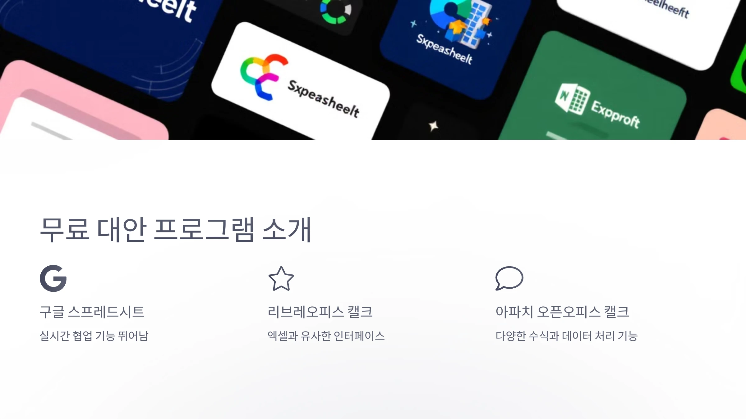 엑셀만이 스프레드시트의 유일한 선택지는 아닙니다. 요즘은 무료로 제공되는 대체 소프트웨어도 기능이 매우 좋아 실무에 충분히 활용할 수 있습니다. 대표적인 무상 대체 프로그램 세 가지를 아래에 정리했습니다.