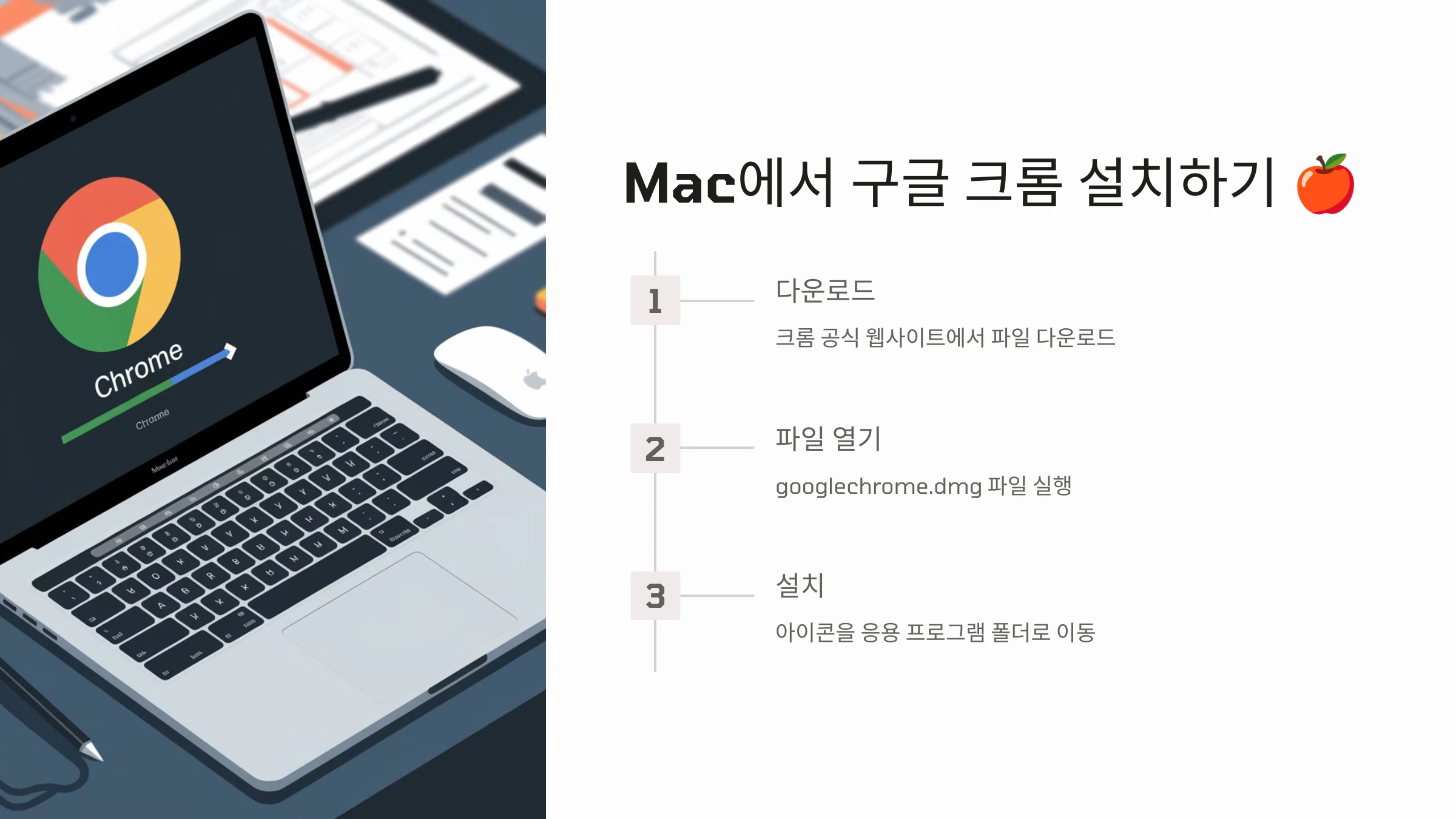 - 다운로드한 'googlechrome.dmg' 파일을 더블클릭하여 엽니다.