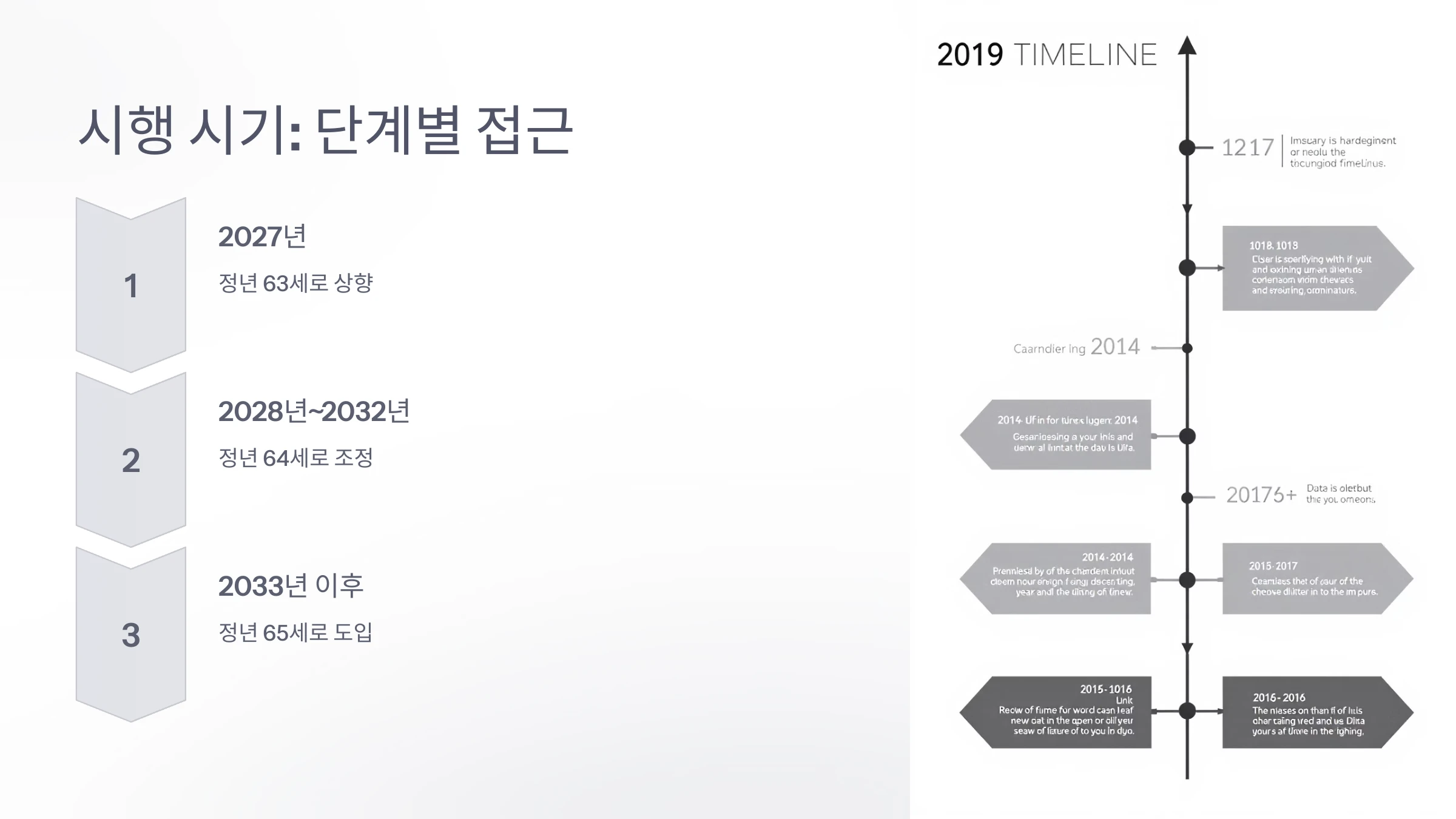 정년을 한꺼번에 올리는 대신, 사회·기업·개인이 적응할 시간을 두고 단계적으로 시행하는 방식이 채택될 예정입니다. 이는 예상되는 충격을 완화하고 제도의 정착 가능성을 높입니다.