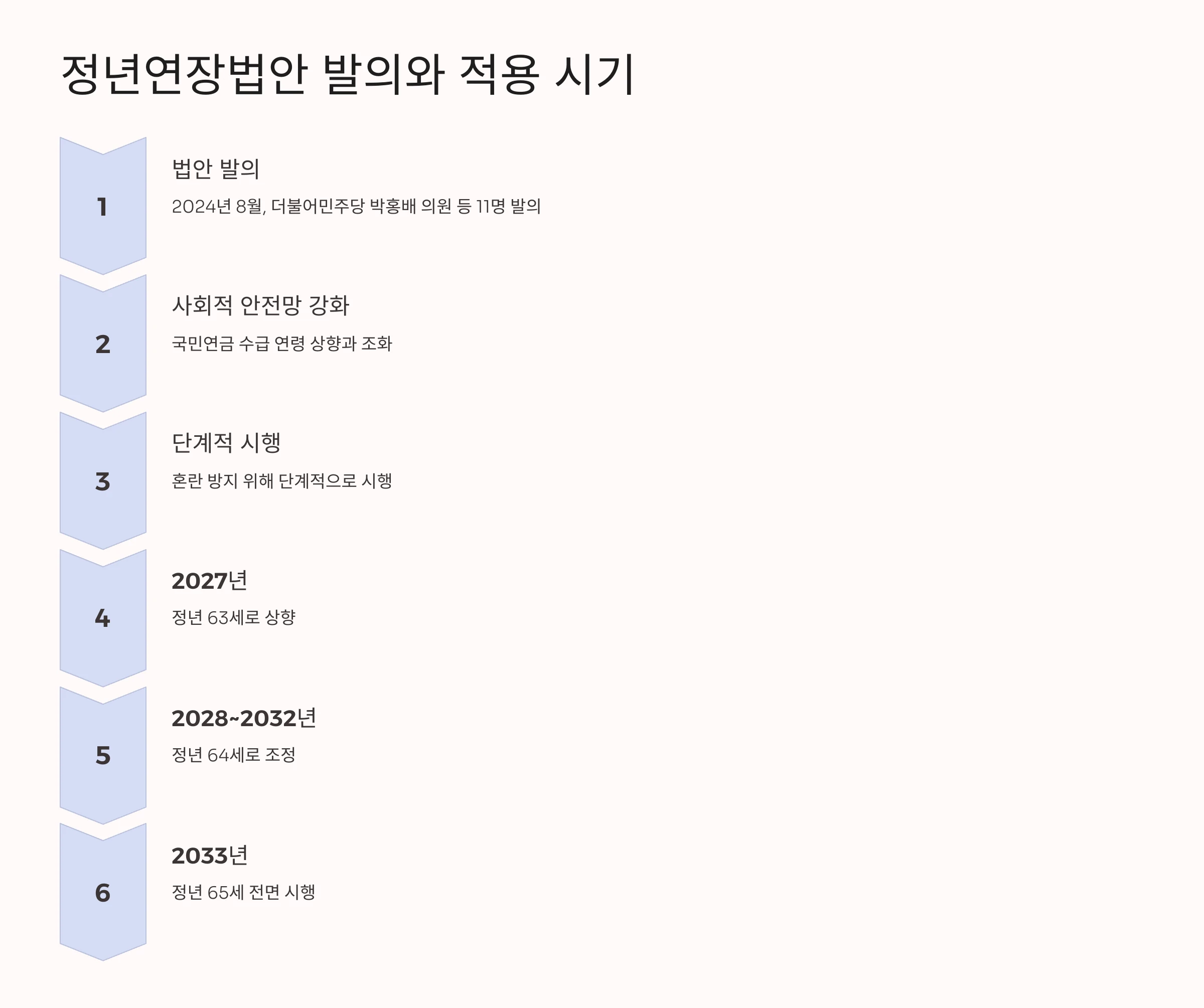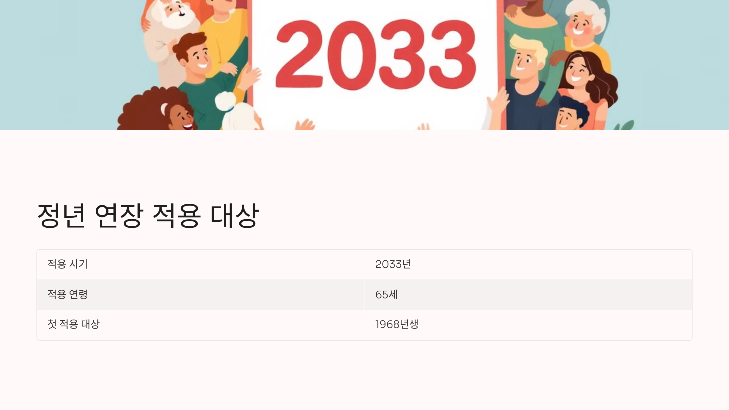 - 2033년: 정년 65세 전면 시행.