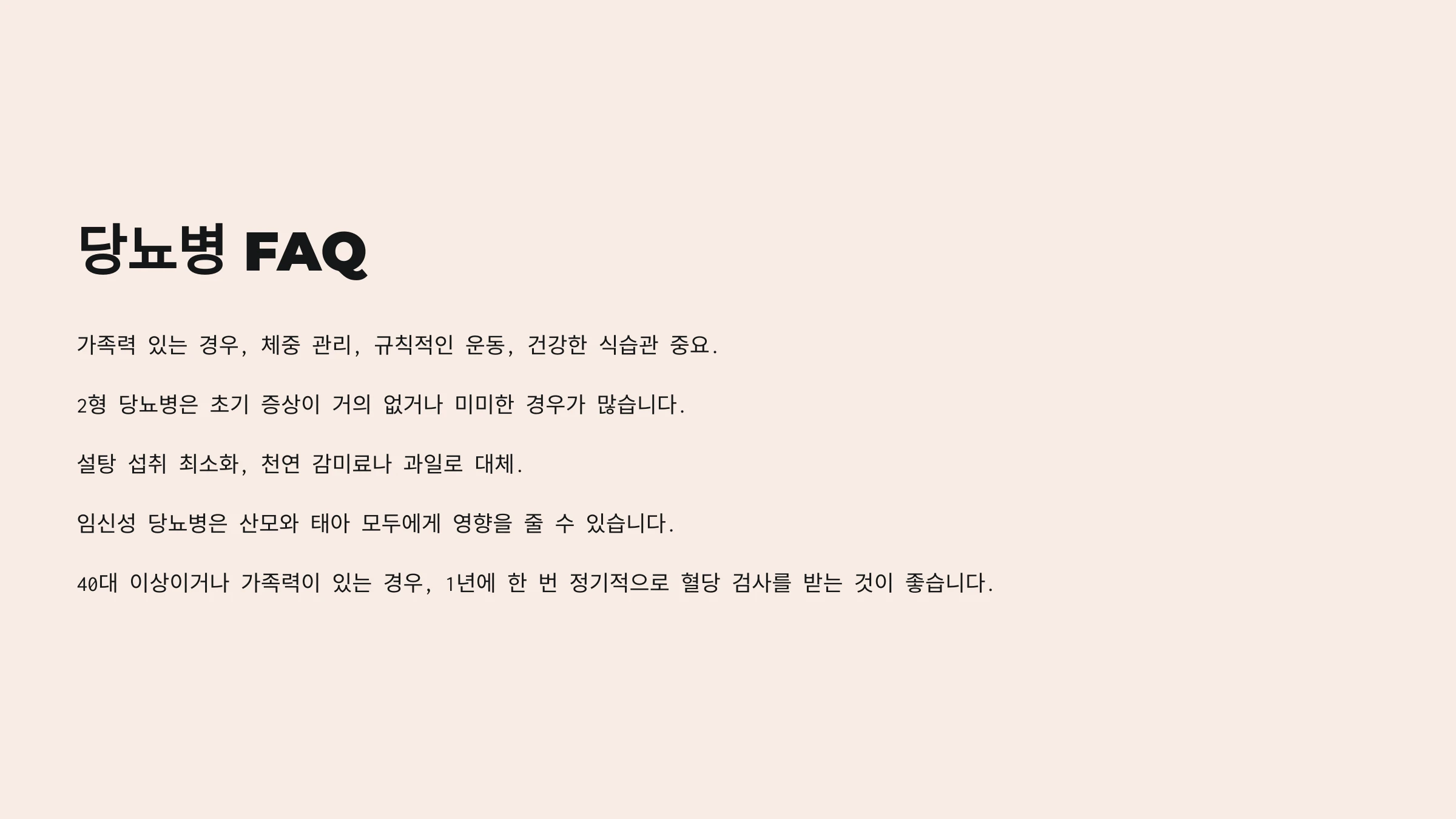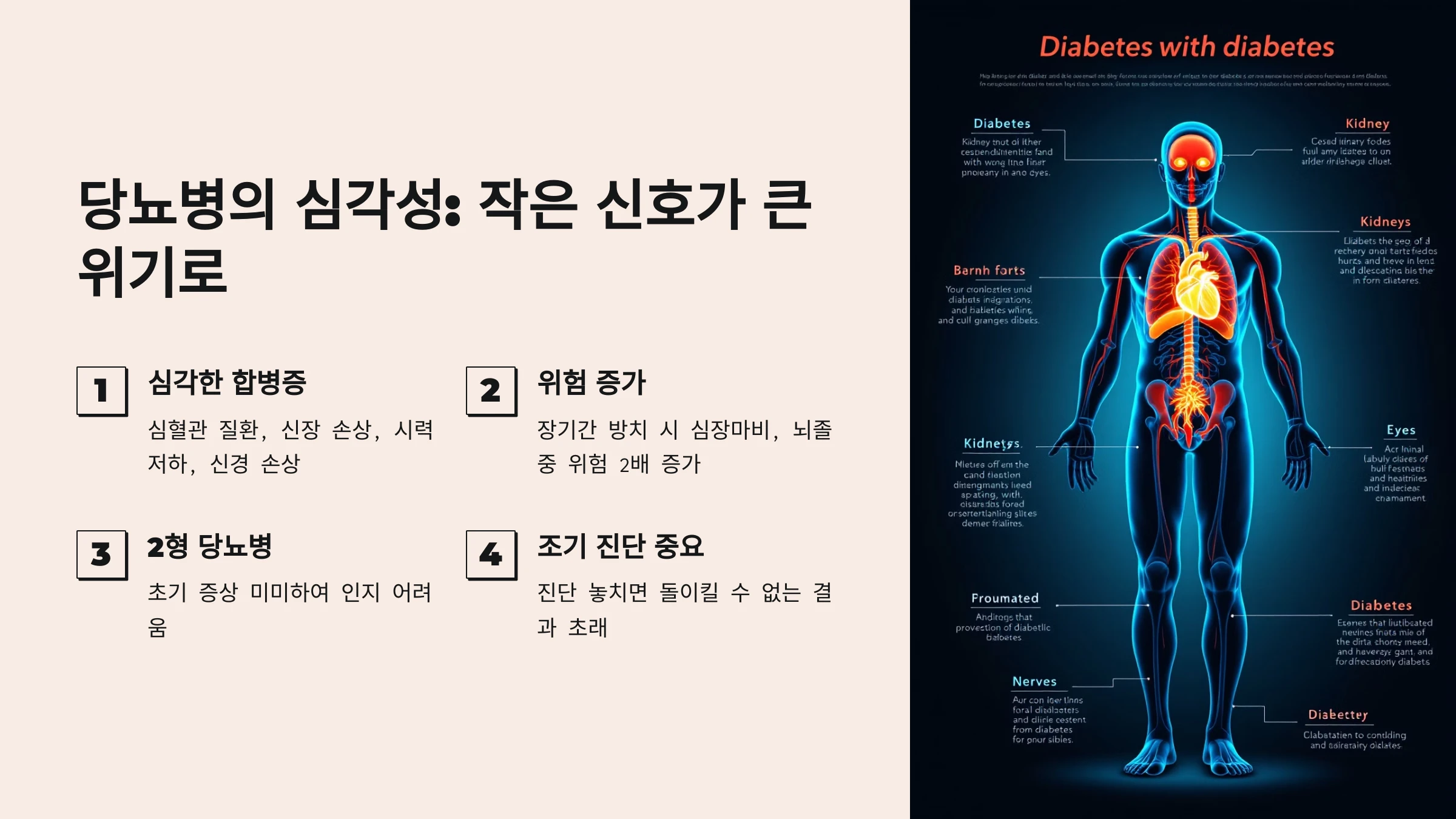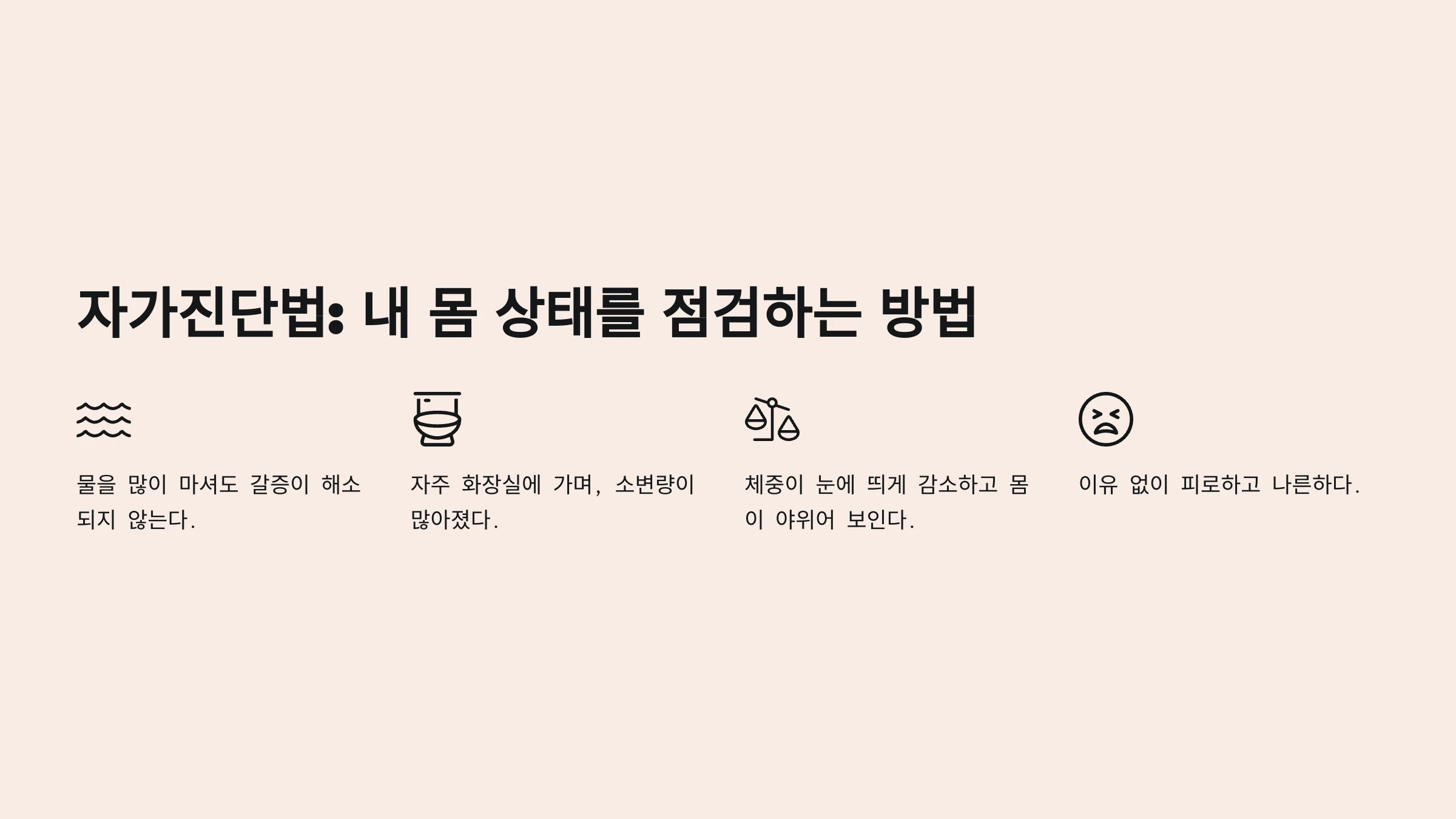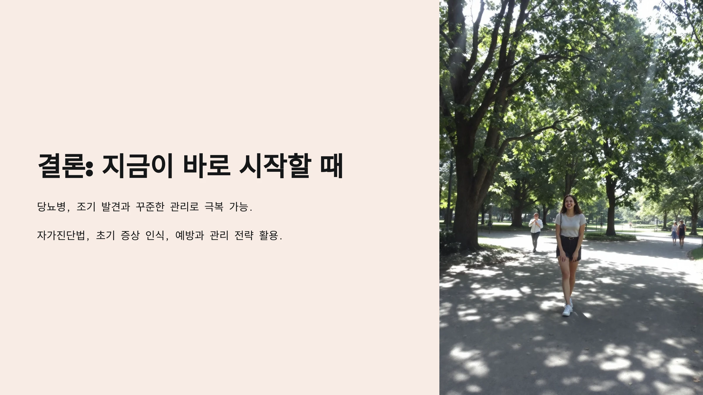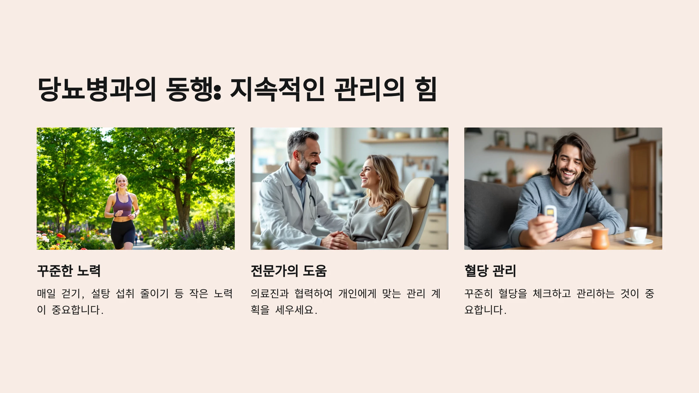 당뇨병은 예방과 관리가 핵심입니다. 몸이 보내는 신호에 귀 기울이고 오늘부터 실천 가능한 작은 변화를 시작해 보세요.