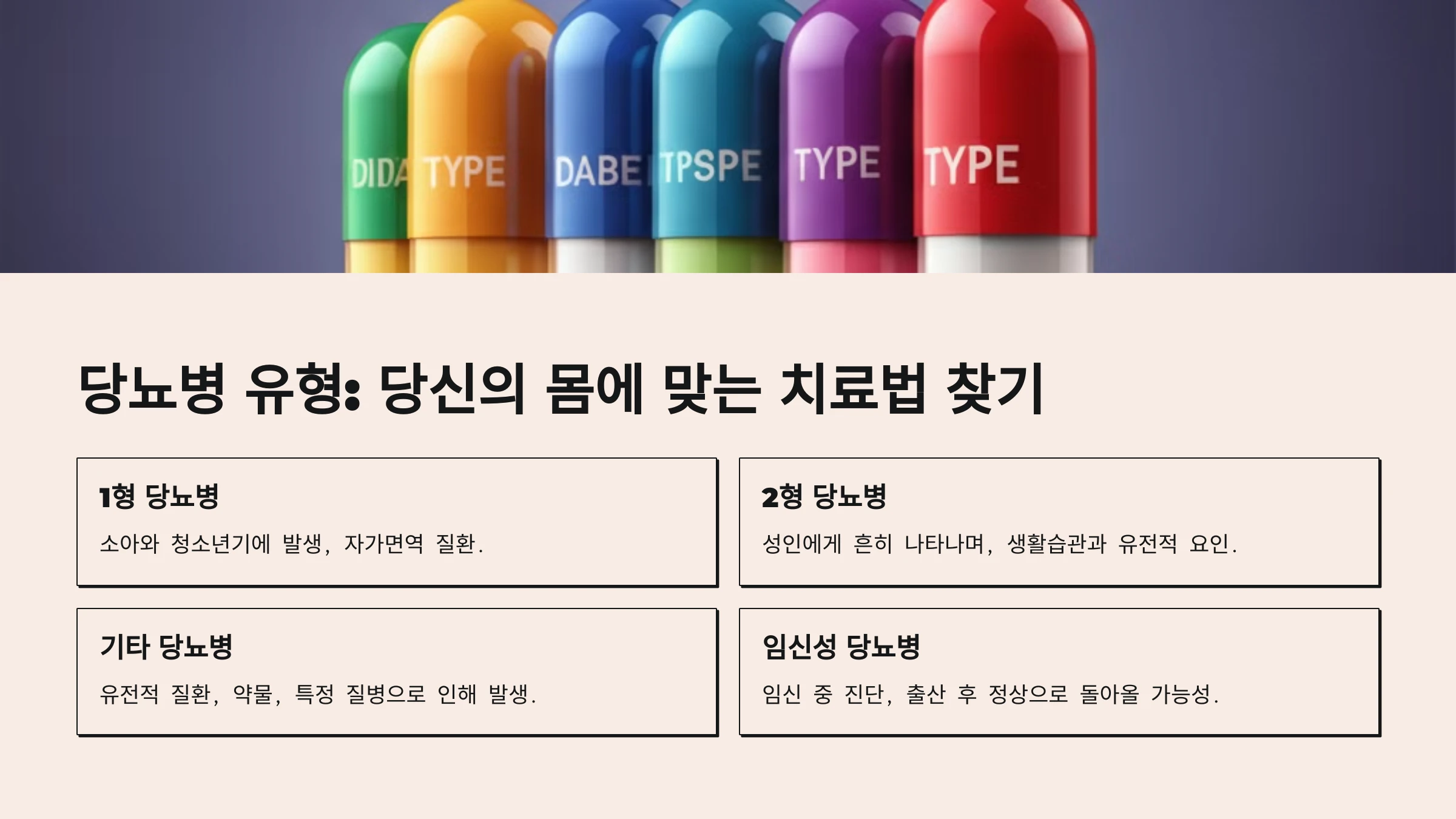 당뇨병은 원인과 발생 양상에 따라 몇 가지 유형으로 나뉘며, 각 유형에 따라 치료와 관리 방법이 달라집니다.