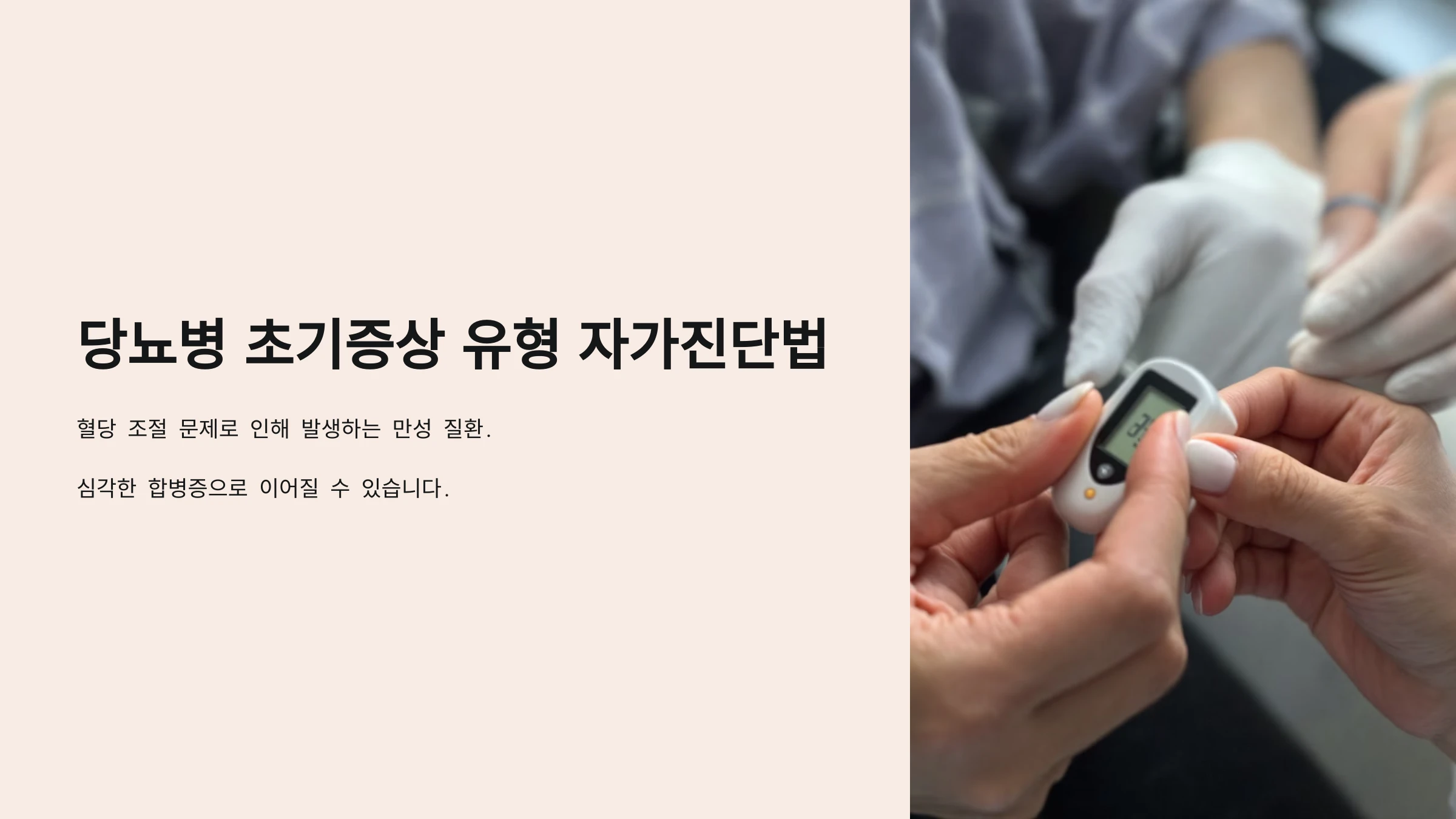 당뇨병은 혈당 조절이 흐트러져 나타나는 만성 질환으로, 방치하면 심각한 합병증으로 이어질 수 있습니다. 초기에 나타나는 신호를 잘 파악해 스스로 점검하는 습관은 건강을 지키는 중요한 출발점입니다. 이 글에서는 당뇨병이 왜 위험한지, 초기 증상은 무엇인지, 간단한 자가점검 방법과 주요 유형을 중심으로 차분하게 정리해 드리겠습니다.